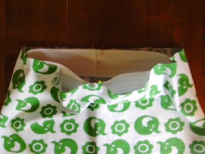- aluksi leikataan sopivan kokoinen suorakaiteen muotoinen pala. Palaa voi leikata myös alareunaa kohti leveneväksi, mutta minä kokeilin tällä kertaa suoralla. Minun palallani oli leveyttä n. 70cm, korkeutta 35cm. Pala saisi olla leveämpikin, ainakin jos tämän toteuttaa joustamattomasta kankaasta.
